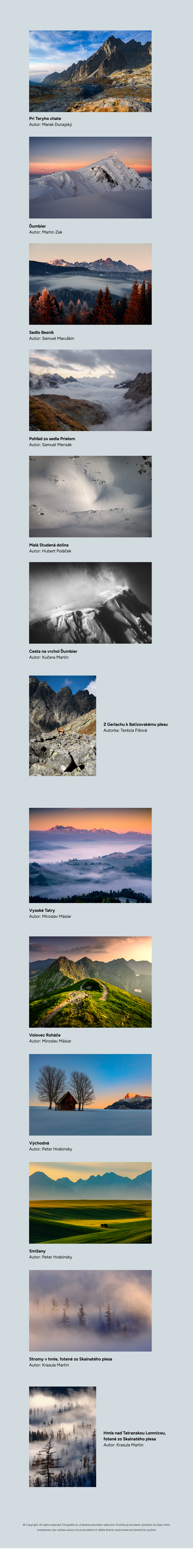 Do súťaže sa zapojili amatérski aj profesionálni fotografi z celého Slovenska. Ďakujeme všetkým zapojeným autorom za účasť – teší nás vysoký záujem a množstvo kvalitných záberov, ktoré zachytili detaily, atmosféru a emóciu tatranskej krajiny.